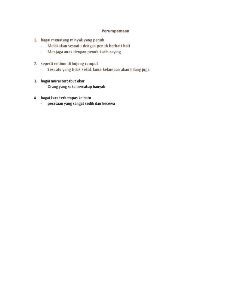 Kamus Perumpamaan from cdn.slidesharecdn.com 491 do right and fear no man tidak takut untuk bertindak atas nama kebenaran biarlah terjual nyawa, jangan terjual nama i'm not afraid to reveal all malpractices that have been commited in this ministry and i am willing to face te consequences. Kisah cinta pelajar sekolah kini hanyalah bagaikan embun di hujung rumput. C seperti rusa masuk kampung. Abu , embun , hujung , kekal , rumput , tidak kekal. Di mana semut mati kalau tidak di gula maksudnya : A seperti gunting makan di hujung. Seperti menatang minyak yang penuh 无微不至;太过宠爱; Umpama minyak setitik, di laut sekalipun timbul juga.