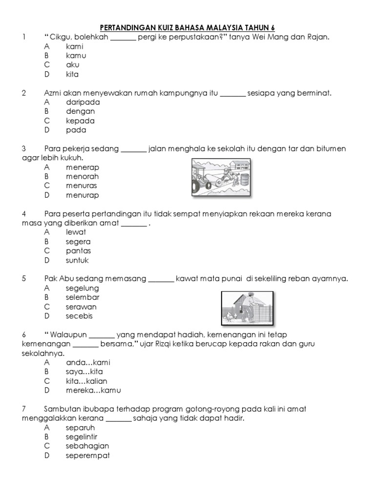 Related : Kuiz Bahasa Melayu Tahun 6 - Himpunan Terbesar Kuiz Tahun 4 Bahasa Melayu Yang Power Dan Boleh Di Cetakkan Dengan Segera Cikgu Ayu : Mempersiapkan daftar pertanyaan untuk anda..